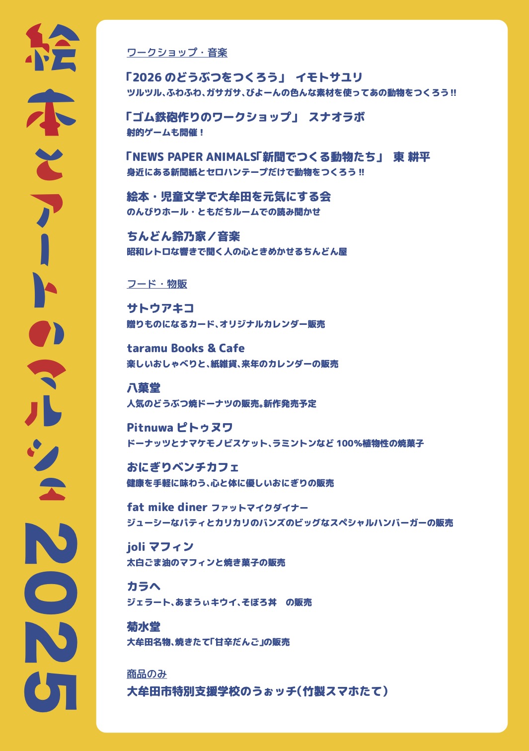 - ①絵本とアートのマルシェ 10:00~15:00